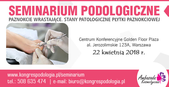 Serdecznie zapraszamy do udziału w Seminarium Podologicznym które odbędzie się 22 kwietnia 2018 r. w Warszawie w Centrum Konferencyjnym GOLDEN FLOOR PLAZA, al. Jerozolimskie 123A.