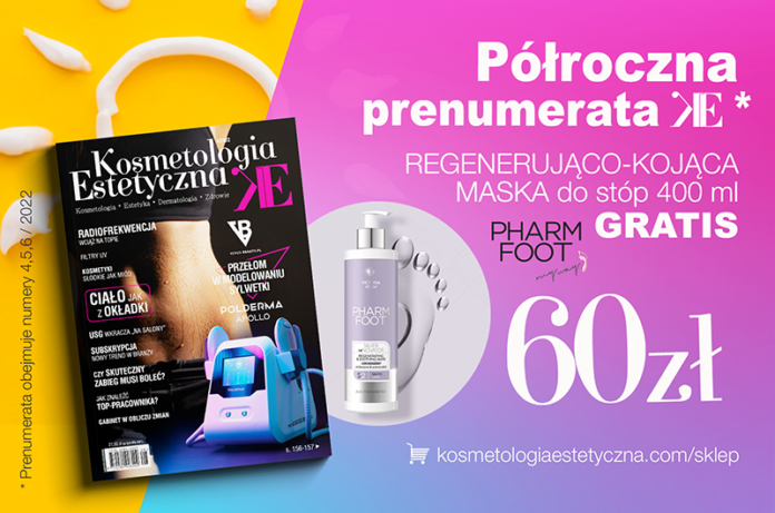 Półroczna prenumerata (czyli 3 numery, począwszy od najnowszego KE 4/2022) z maską do stóp firmy PHARM FOOT.