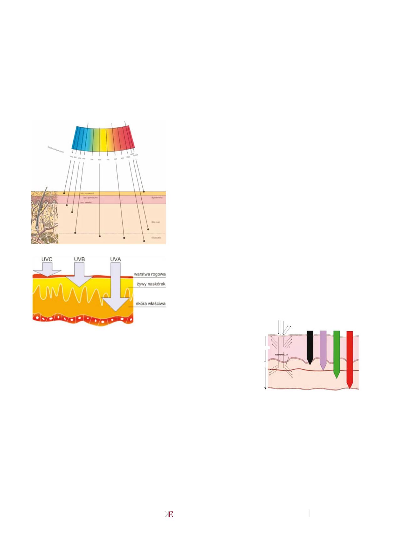 go: a) Schemat różnic w głębokości penetracji promieniowania UV,