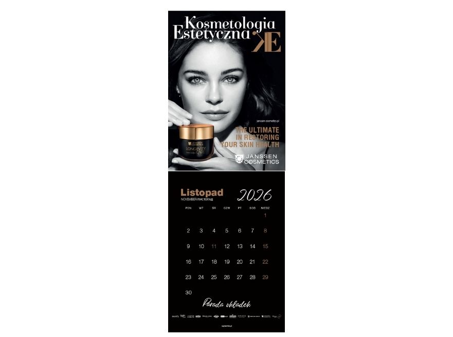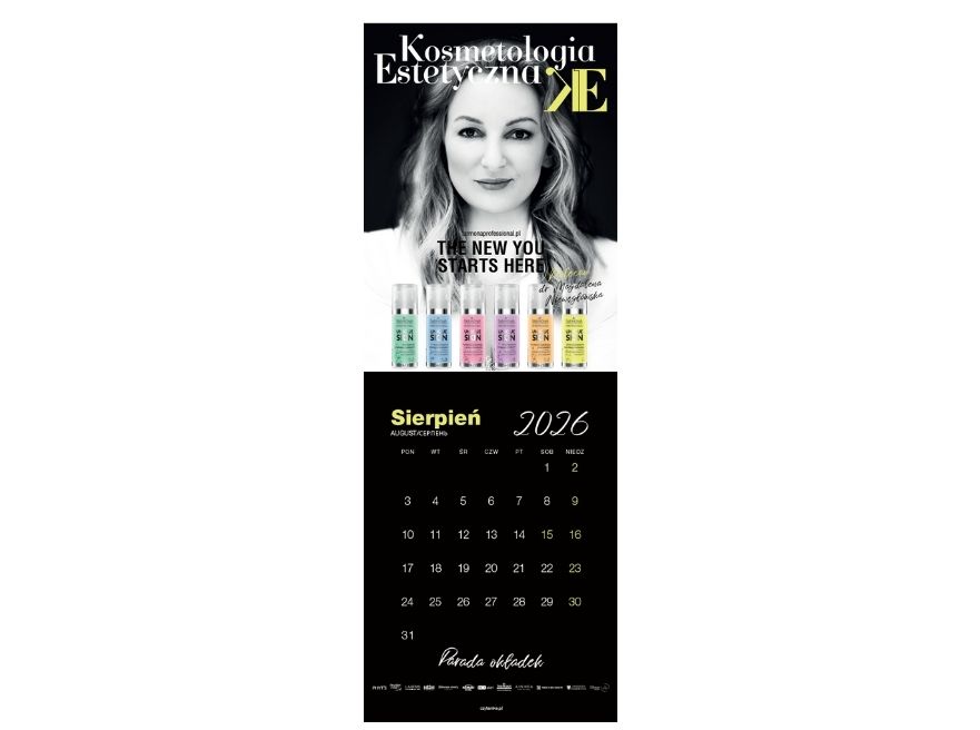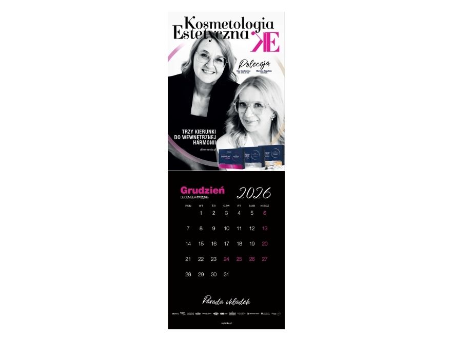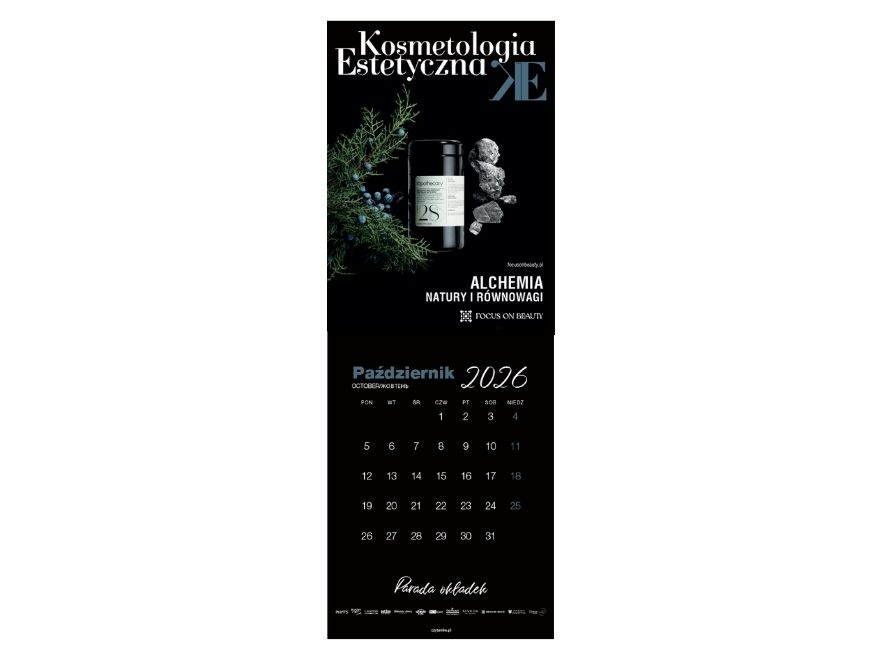 „Parada Okładek” to wyjątkowy kalendarz ścienny na rok 2026 (13 miesięcy) + styczeń 2027, który łączy elegancję z funkcjonalnością. Celebruje najpiękniejsze okładki Kosmetologii Estetycznej z 2025 roku oraz takie, które jeszcze się nie ukazały, wprowadzając do Twojej przestrzeni niepowtarzalny klimat branży beauty.